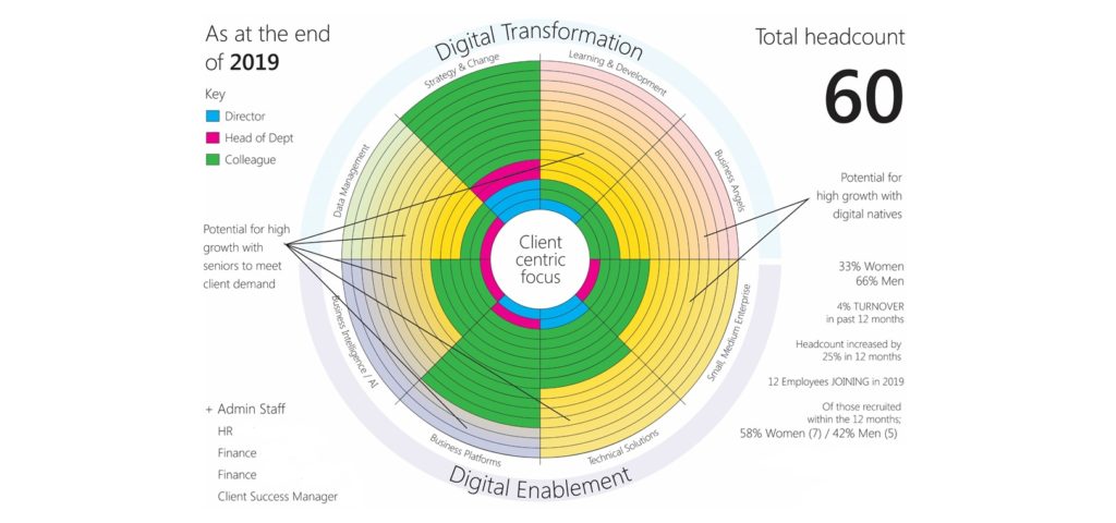 Our Training practice with their ‘business angels’ aspirations will grow and work in partnership with the SME team to drive digital transformation across businesses. The SME team will focus on growing our fully outsourced services for small but high growth potential businesses (20 – 75 employees). We will grow as businesses require more ‘digital natives’ who in turn will support client organisations to embrace the ‘modern way of working’.